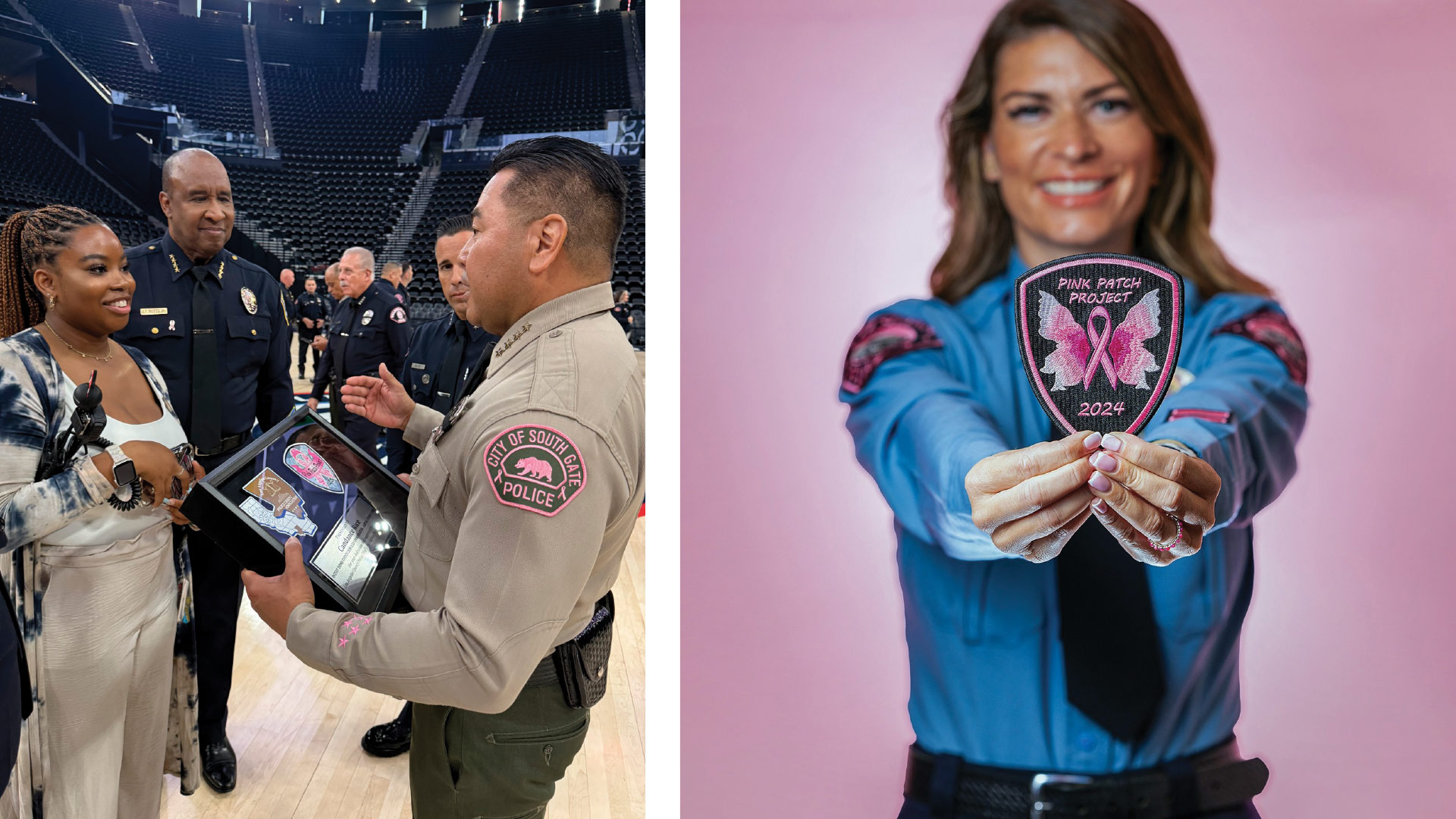 Photo Right: Inglewood P.D. Detective Jackie Sipaque (a breast cancer survivor) and Amy McDaniel
